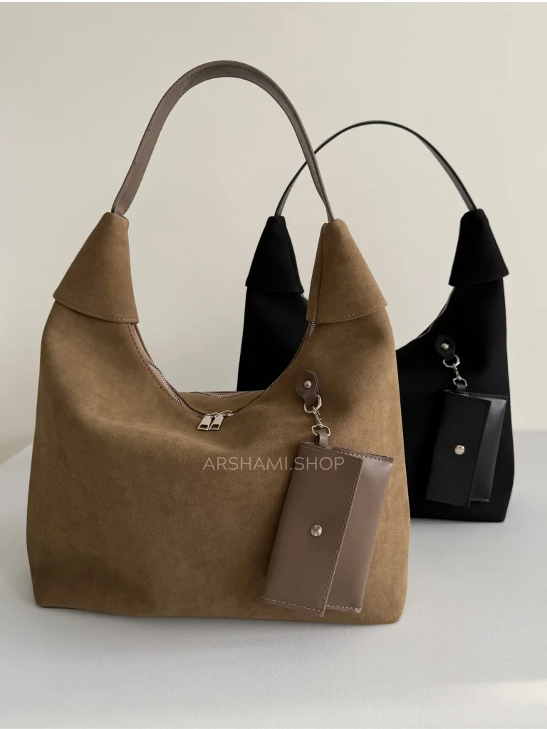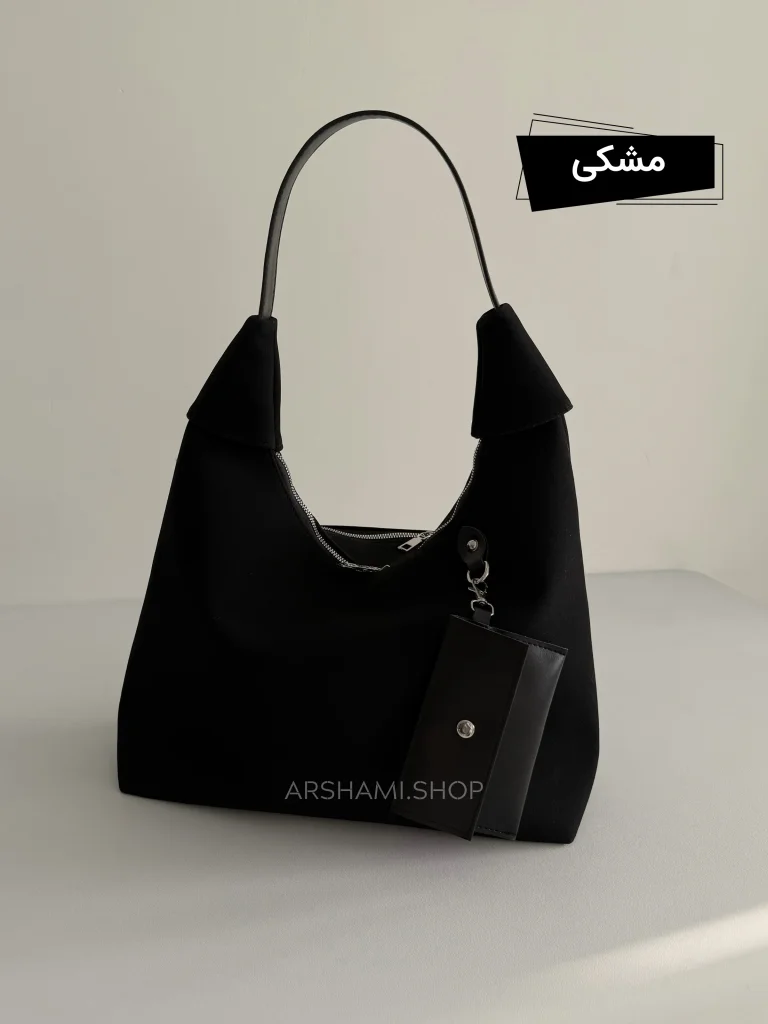 - پشت کیف: دارای یک جیب بهمراه زیپ و دارای آویز کیف پول خرد