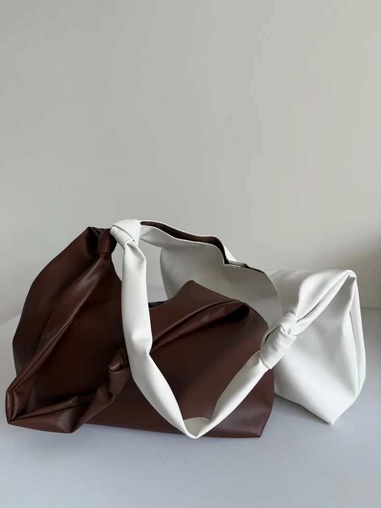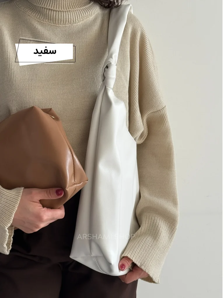 علاوه بر این در دو طرف بند کیف دو گره وجود دارد که ظاهر زیبایی به کیف داده و استحکام محل اتصال بند به کیف را نیز بیشتر میکند.