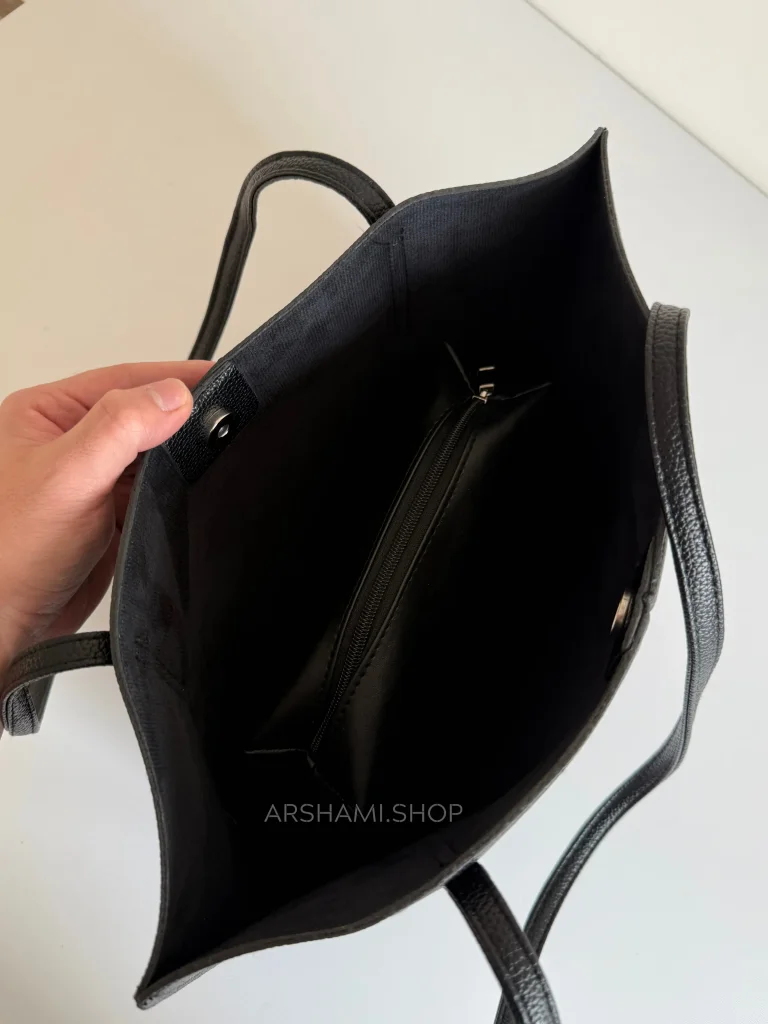 - فضای داخل و بیرون کیف: دارای یک فضای کلی بهمراه قفل آهنربایی و داخل کیف دارای یک کیف آرایشی